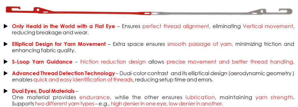 AAS Tech presents the world’s first flat-eye healds, engineered to revolutionize the weaving process with advanced yarn guidance, reduced friction, and superior durability. With nine variations across different sizes and shapes, AAS Flat Healds are designed for efficiency, longevity, and precision.