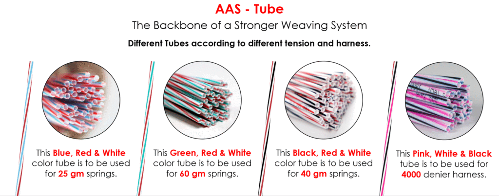 AAS Tubes are engineered for superior strength, with compression characteristics and long-lasting performance. Crafted using four high-quality materials, our tubes provide exceptional durability and structural integrity to enhance the weaving process.