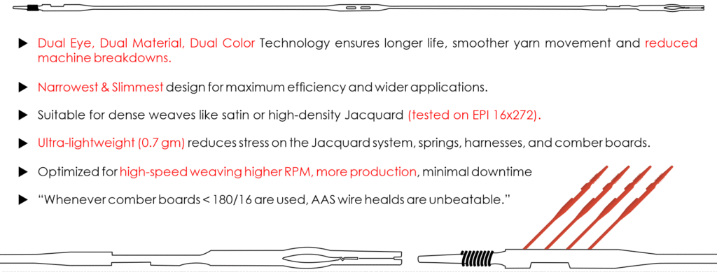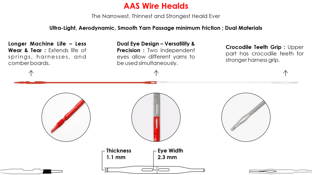 AAS Wire Healds are designed with cutting-edge Swiss technology and manufactured in India, setting a global benchmark in weaving innovation.