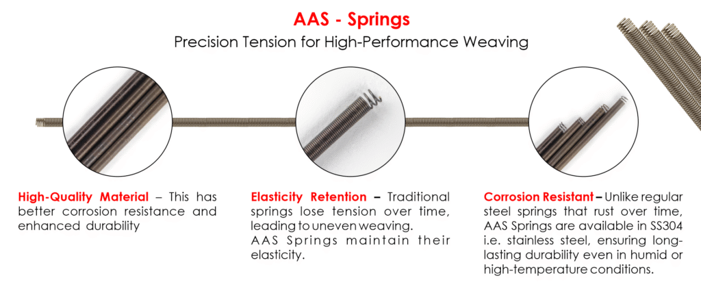 AAS Spring Assembly Set is a precision-engineered system where each component enhances weaving efficiency, fabric quality, and machine lifespan. Unlike conventional setups, every part is designed to work seamlessly together, ensuring minimal breakdowns and maintenance.